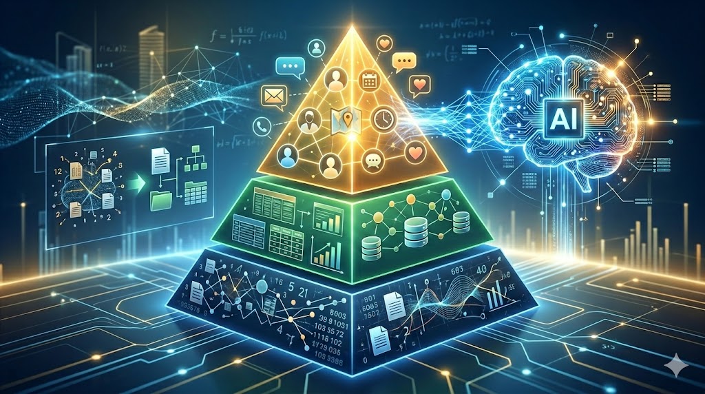 AI活用にはデータ整備が重要。顧客情報、行動データ、文脈データの三層構造を整えることで、AIの精度を最大化しましょう。