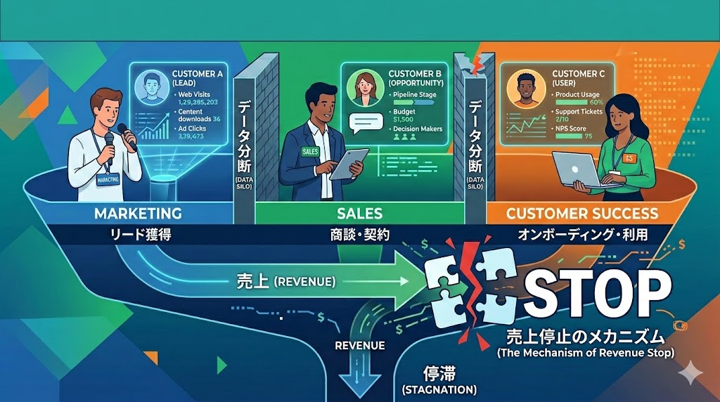 部門間の壁を取り払い、一つの「収益エンジン」としてデータを循環。LTVの向上を実現します。